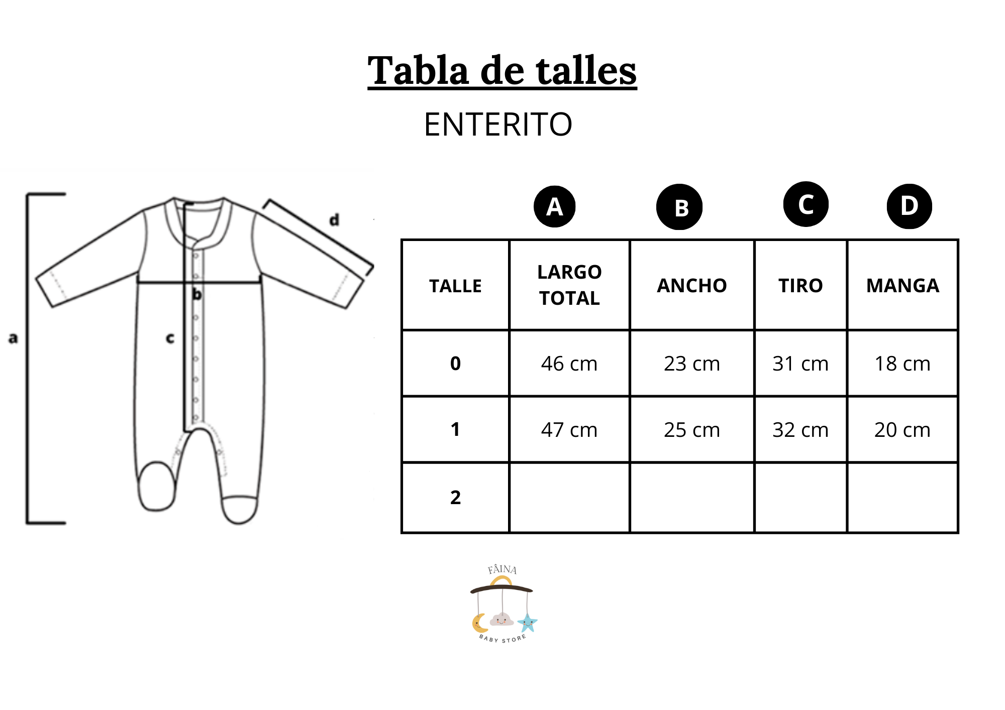 Talle 0: Recién nacido a 1 mes.